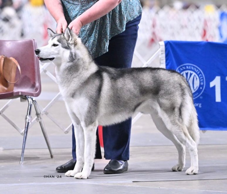 Zephyr started out his show carrier with a 4 point major and a BOB over specials and completed his CH with a 5 point specialty win, going BOW under Breeder judge Donna Beckman. We’re super proud of “Team Z”. April is working on his obedience skills in his off time, so we’ll be cheering these two on in several venues.