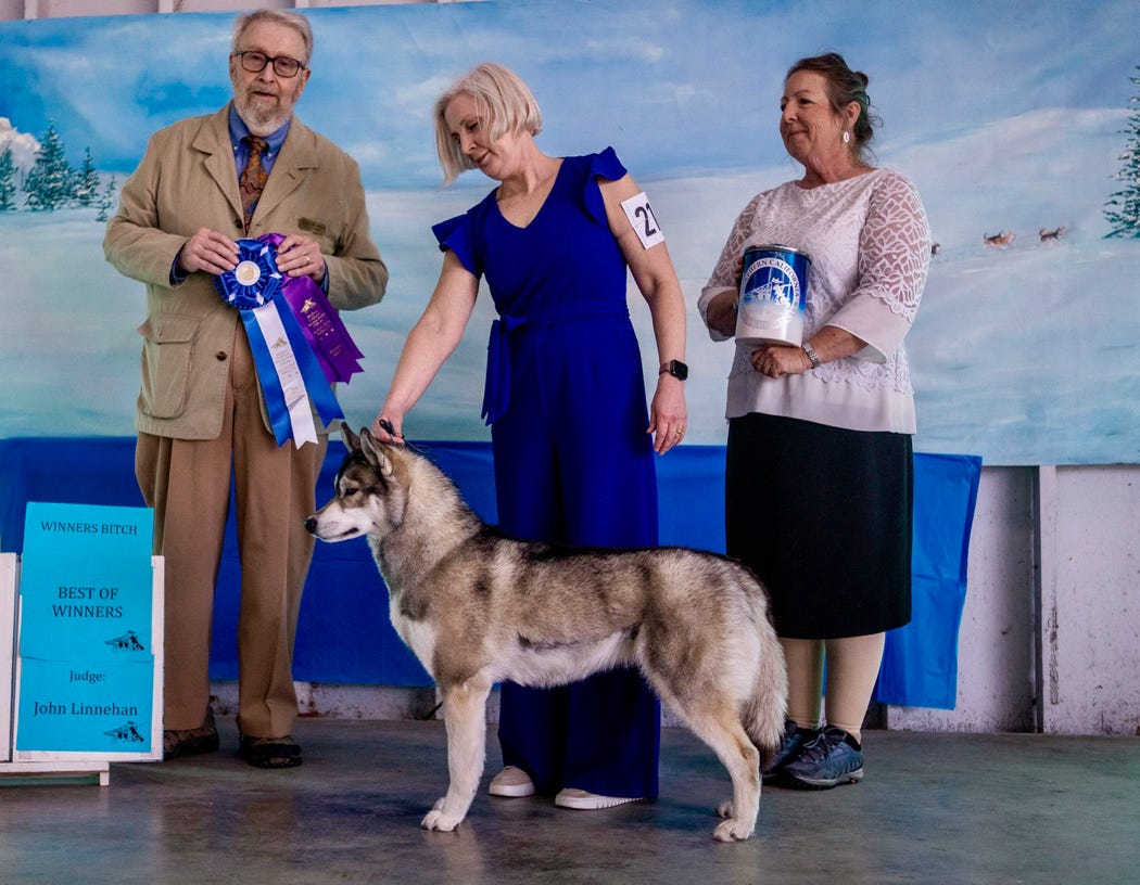 Grace is our newest family member, and our little singleton firecracker! If you’ve never owned a singleton, you’ve missed out. She has the attitude and opinions of a whole litter, packed into one 20” little package! Grace is firery and fun, and definitely needs a job, so also has the most titles I’ve put on a puppy in all my years. She finished her Championship with three, 5 point majors. Bred & owned by Laurissa Schmidt, Sally Kamm & Debra Fitzgerald.